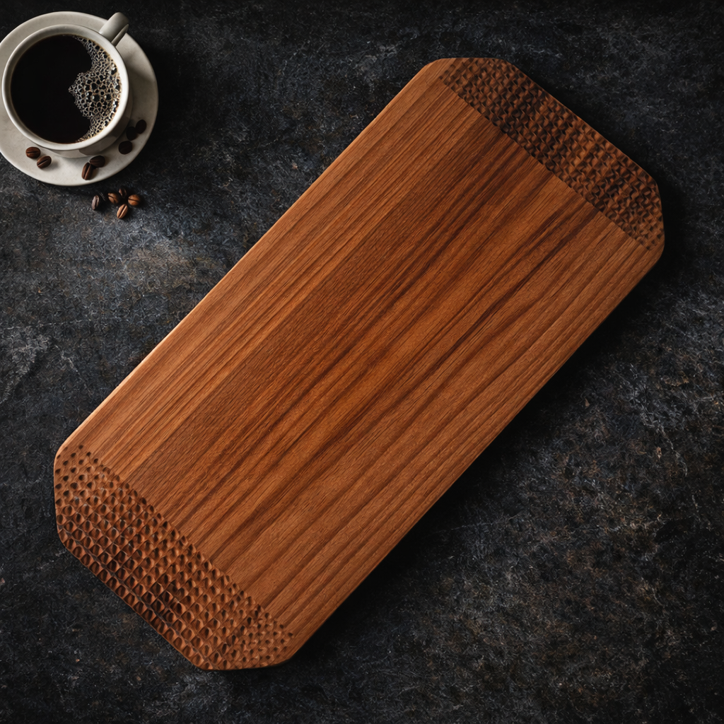Produzida em madeira maciça, cada peça revela veios únicos — impossíveis de replicar.