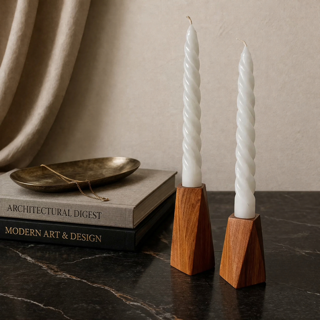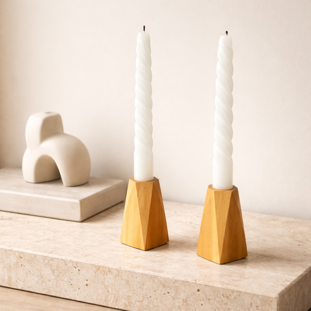 Inspirados na estética Low Poly da modelagem 3D, os Castiçais LowPoly traduzem planos, ângulos e superfícies em design autoral.