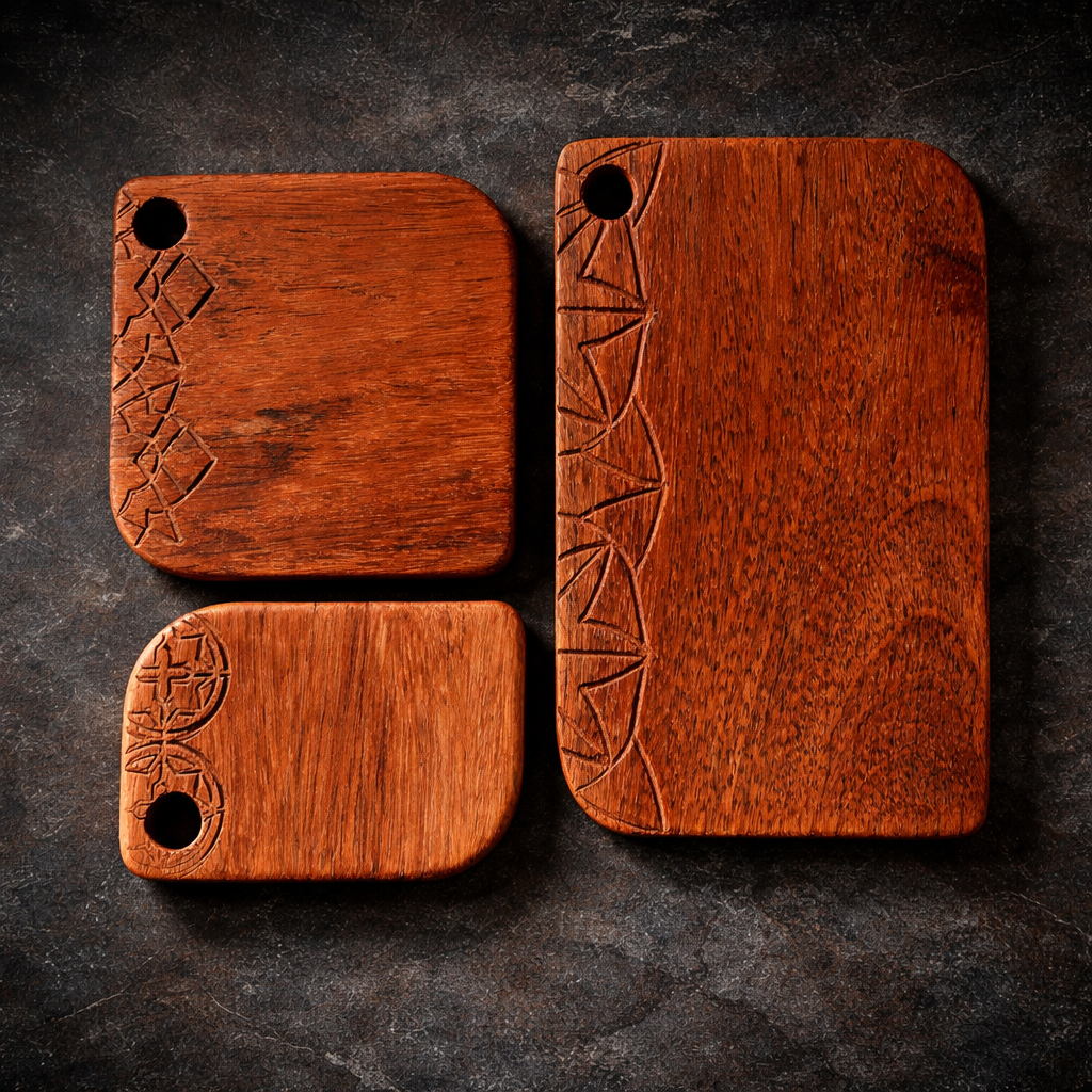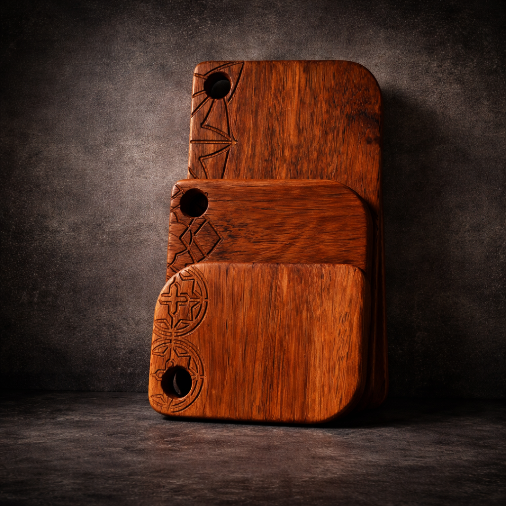 Produzidas em madeira maciça, cada peça revela veios únicos — impossíveis de replicar.